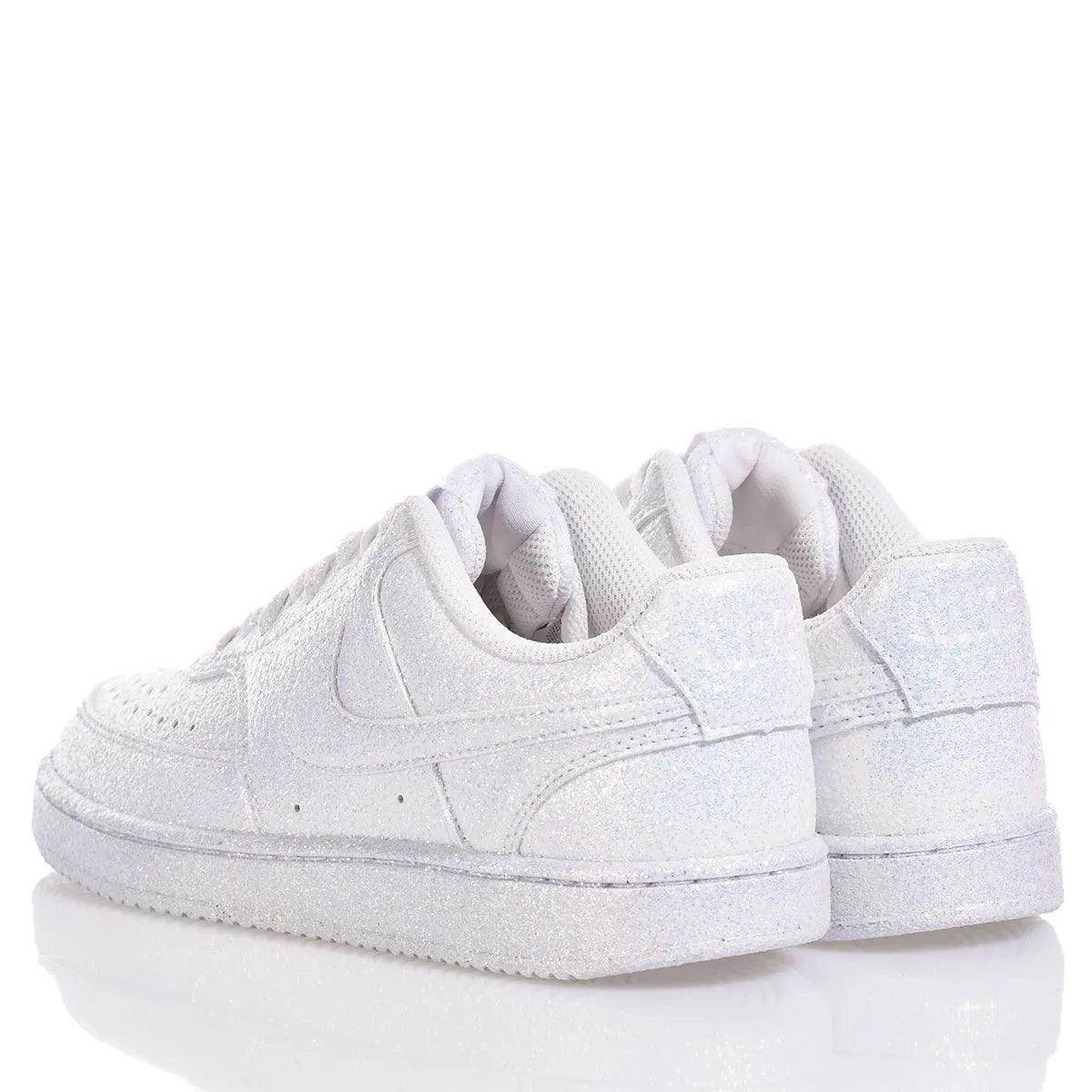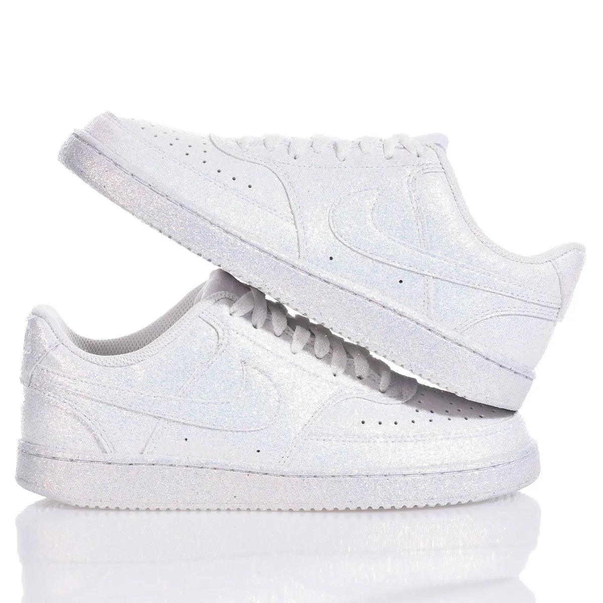 Nike Full Rainbow è la sneakers che trasforma ogni passo in una scintillante dichiarazione di stile! Interamente ricoperta di glitter olografici su base bianca, questa scarpa cattura immediatamente l'attenzione, regalando un effetto luminoso e sofisticato. Il design minimalista, unito alla brillantezza, fa di questa Nike un vero e proprio pezzo di lusso, perfetto per chi vuole unire comfort e glamour in un unico look.