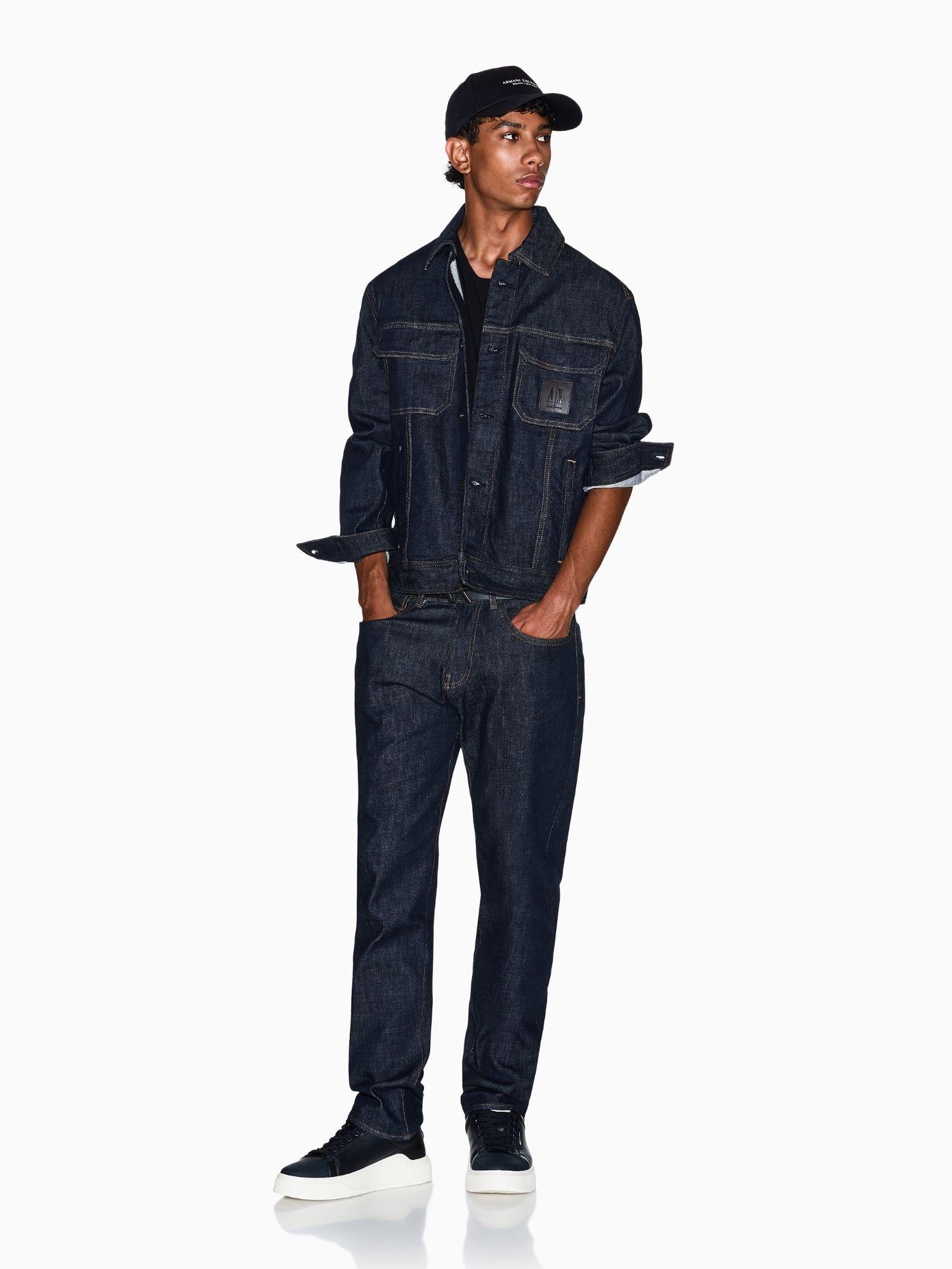 Jeans slim realizzati in tessuto composto da 78% cotone, 21% poliestere e 1% elastan. Etichetta sintetica: 100% poliuretano. Non lavare a secco. Il capo non è resistente ai lavaggi a secco. Non usare lasciugatrice. Non asciugare in tamburo rotativo. Non usare candeggina. Il candeggio non è consentito; si consiglia di utilizzare detersivi per colori senza agenti sbiancanti per evitare di sbiadire i tessuti. Stirare con temperatura massima di 110°C. La stiratura a vapore può causare danni irreversibili.