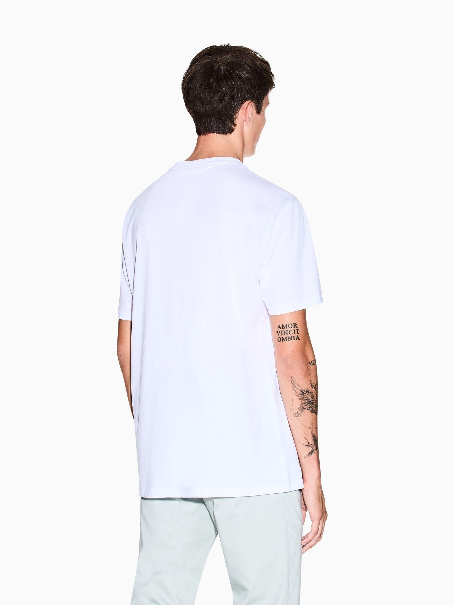 T-shirt Armani Exchange da uomo bianca con vestibilità regular fit, realizzata in puro cotone per offrire morbidezza, traspirabilità e comfort quotidiano. Dal design pulito e contemporaneo, è un capo essenziale e versatile, perfetto per completare look casual o da indossare sotto giacche e felpe. Tessuto 100% cotone.