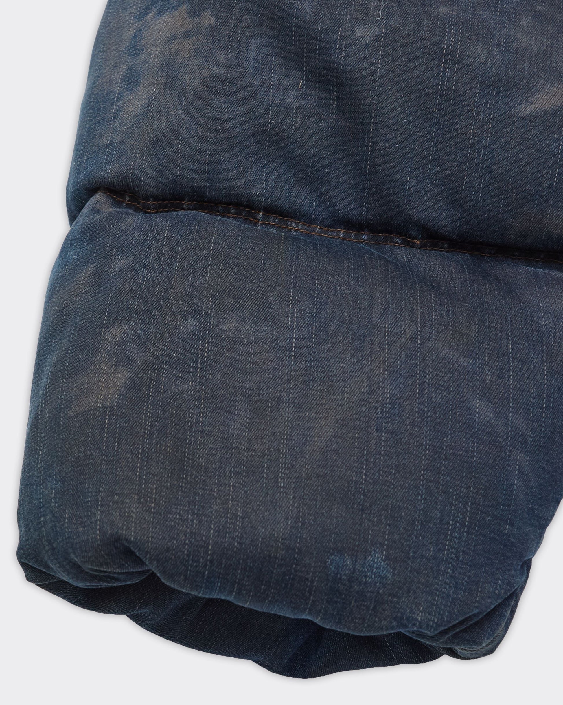 Questa giacca da uomo imbottita e trapuntata è realizzata in denim: pilastro del design Diesel. Caratterizzato dalla classica estetica destroyed, il tessuto è leggero, trattato al laser e lavato per creare un motivo camouflage effetto dirt. Calda e confortevole grazie al colletto alto con fodera morbida e alle coulisse sui polsi e sul fondo.