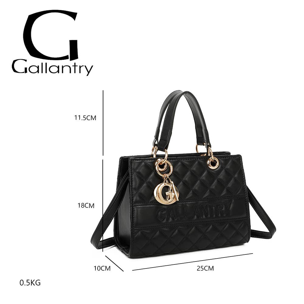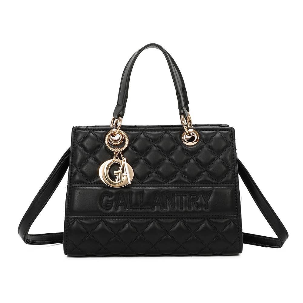 Immergiti nel mondo del lusso con la nostra borsa trapuntata Gallantry, un fiore all'occhiello che incarna eleganza e raffinatezza. Realizzata con meticolosa attenzione ai dettagli, questa borsa ha una trama trapuntata ricca e delicata, che offre un tocco morbido e un aspetto sontuoso. Al centro del suo design, un accessorio Gallantry dorato è appeso elegantemente, aggiungendo un tocco di glamour e identità unici al nostro marchio. Che tu stia preparando le valigie per una serata elegante o come aggiunta chic al tuo abbigliamento da giorno, questa borsa è progettata per attirare l'attenzione e valorizzare ogni momento. Con il suo look senza tempo e la funzionalità moderna, è l'incarnazione perfetta dello stile Gallantry: dove la bellezza incontra la praticità.