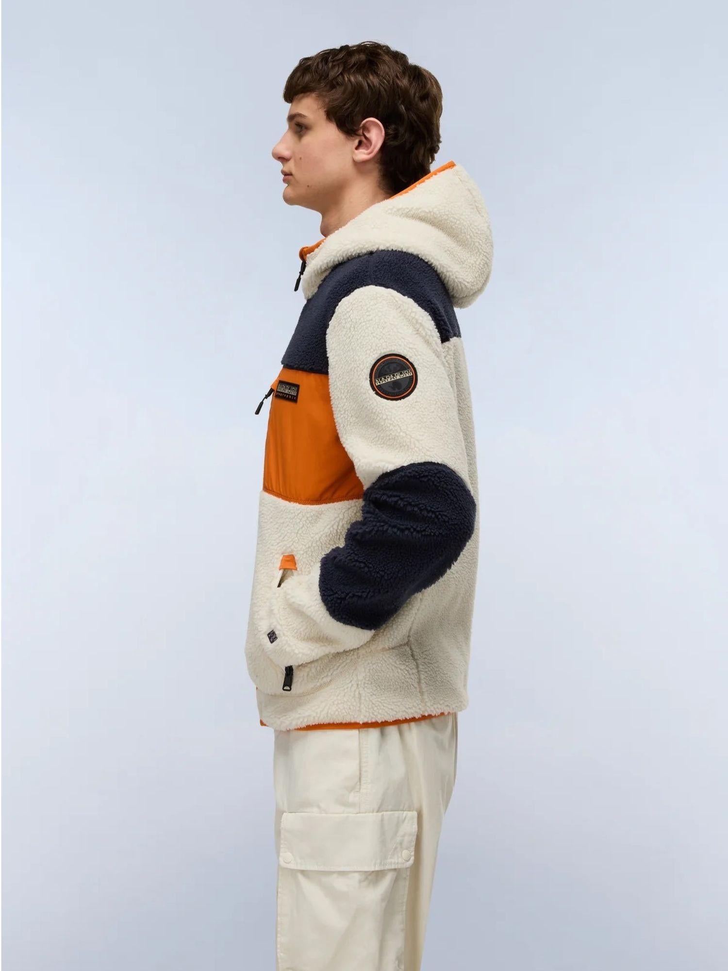 Napapijri Felpa Uomo Yupik Con Cappuccio E Zip in Pile Multicolore