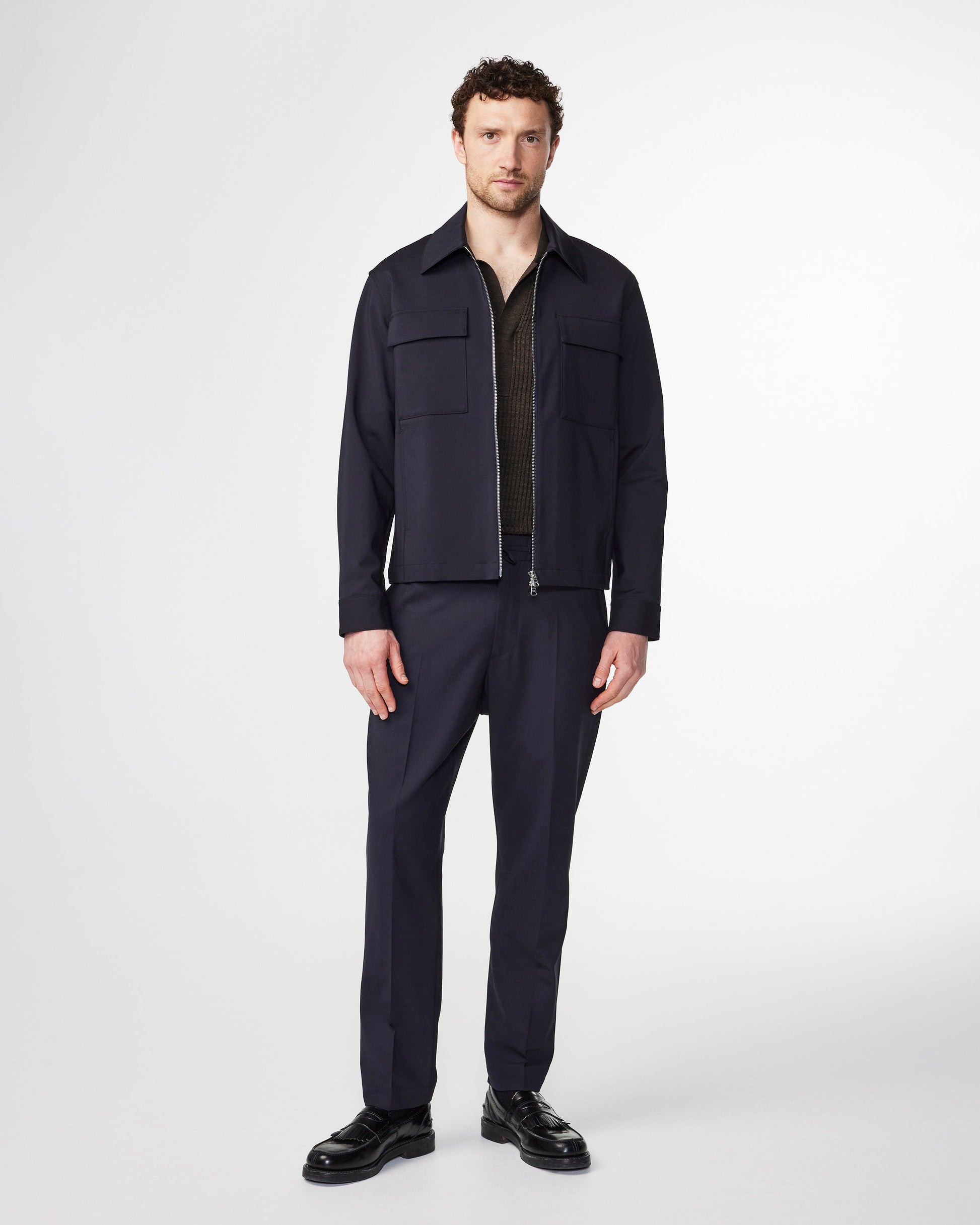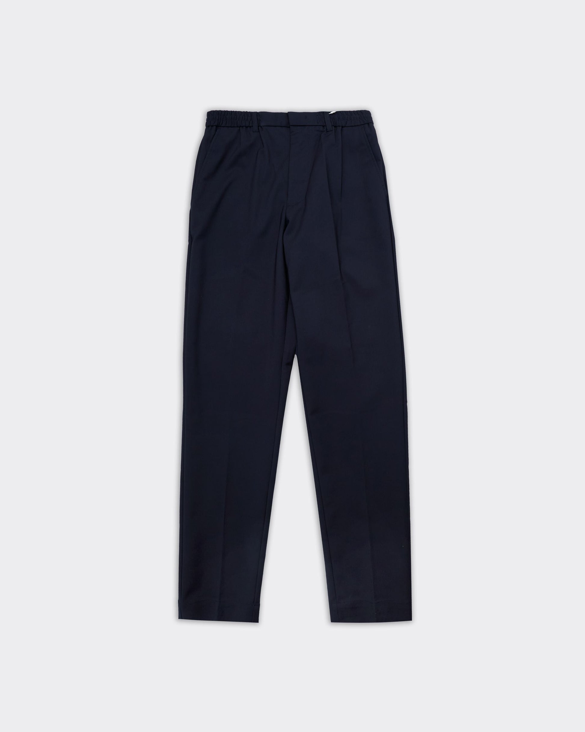 Versatile casual dress trousers with a tapered leg for a modern, streamlined look. The elasticated waistband with a hidden drawstring ensures a secure and comfortable fit, while the neat press fold adds a polished, sophisticated touch. Crafted from 350 g/m� Italian cotton blend fabric, these trousers offer subtle stretch for added comfort and durability, making them ideal for both casual and semi-formal occasions.