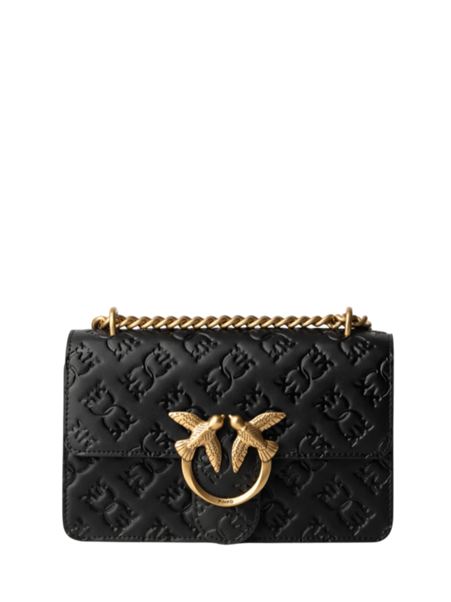 Pinko borsa Love One Mini in pelle con logo imprimè nero oro