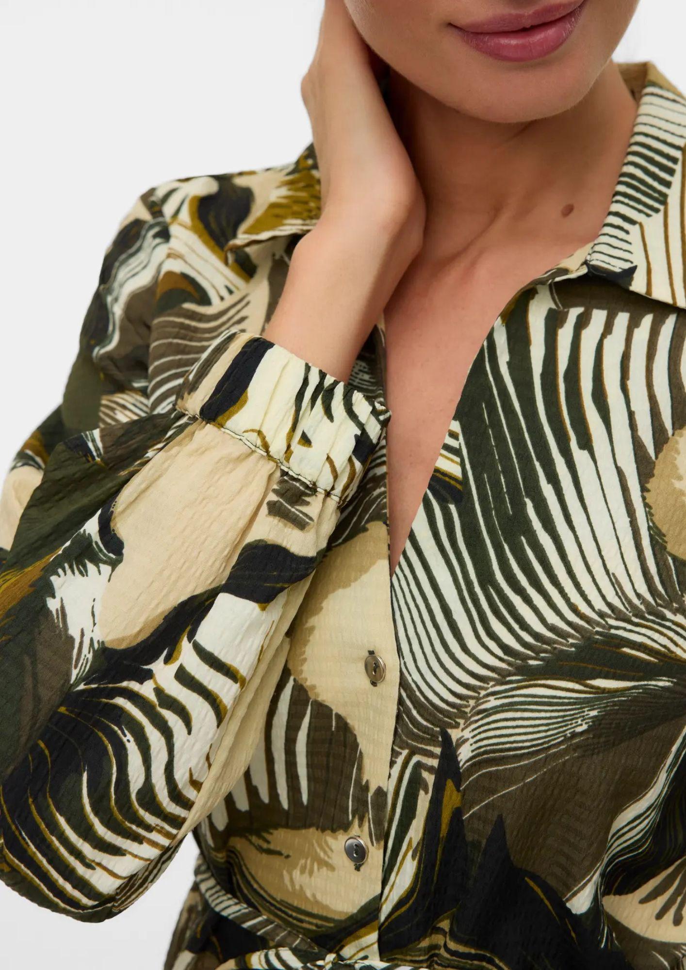 Camicia dal design chic e versatile, ideale per creare look sia casual che eleganti. Realizzata in tessuto leggero e sostenibile, è perfetta da indossare da sola o aperta sopra un top. Presenta maniche lunghe e ampie, polsini non regolabili e chiusura frontale con bottoni. La vestibilità regular fit assicura comfort e libertà di movimento, rendendola un capo essenziale per ogni stagione. Tessuto principale: 60% poliestere riciclato, 40% poliestere.