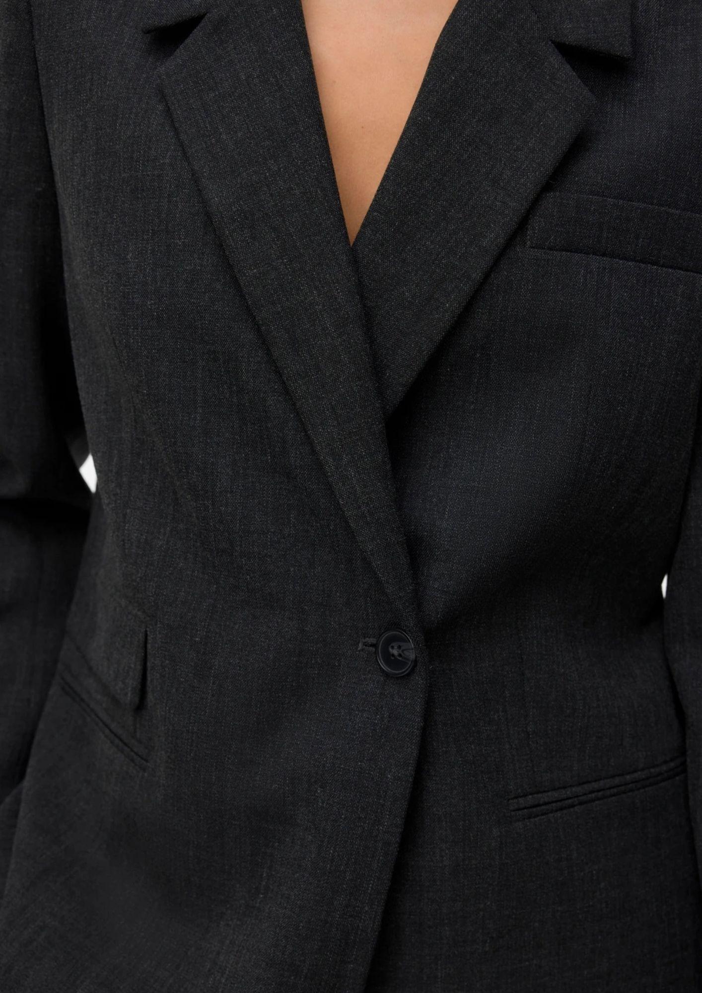 Blazer dal design classico e sofisticato, un capo essenziale che aggiunge eleganza e carattere a qualsiasi outfit. Realizzato in tessuto con poliestere riciclato, offre comfort, struttura e una vestibilità regular fit perfetta per ogni occasione. Presenta collo reverse, chiusura con bottoni e tasche frontali funzionali, mentre la fodera interna in poliestere garantisce una piacevole sensazione di comfort. Ideale da abbinare a t-shirt, jeans ampi e scarpe con tacco per un look quotidiano raffinato. Composizione 50% poliestere riciclato, 43% poliestere, 5% viscosa, 2% elastan.